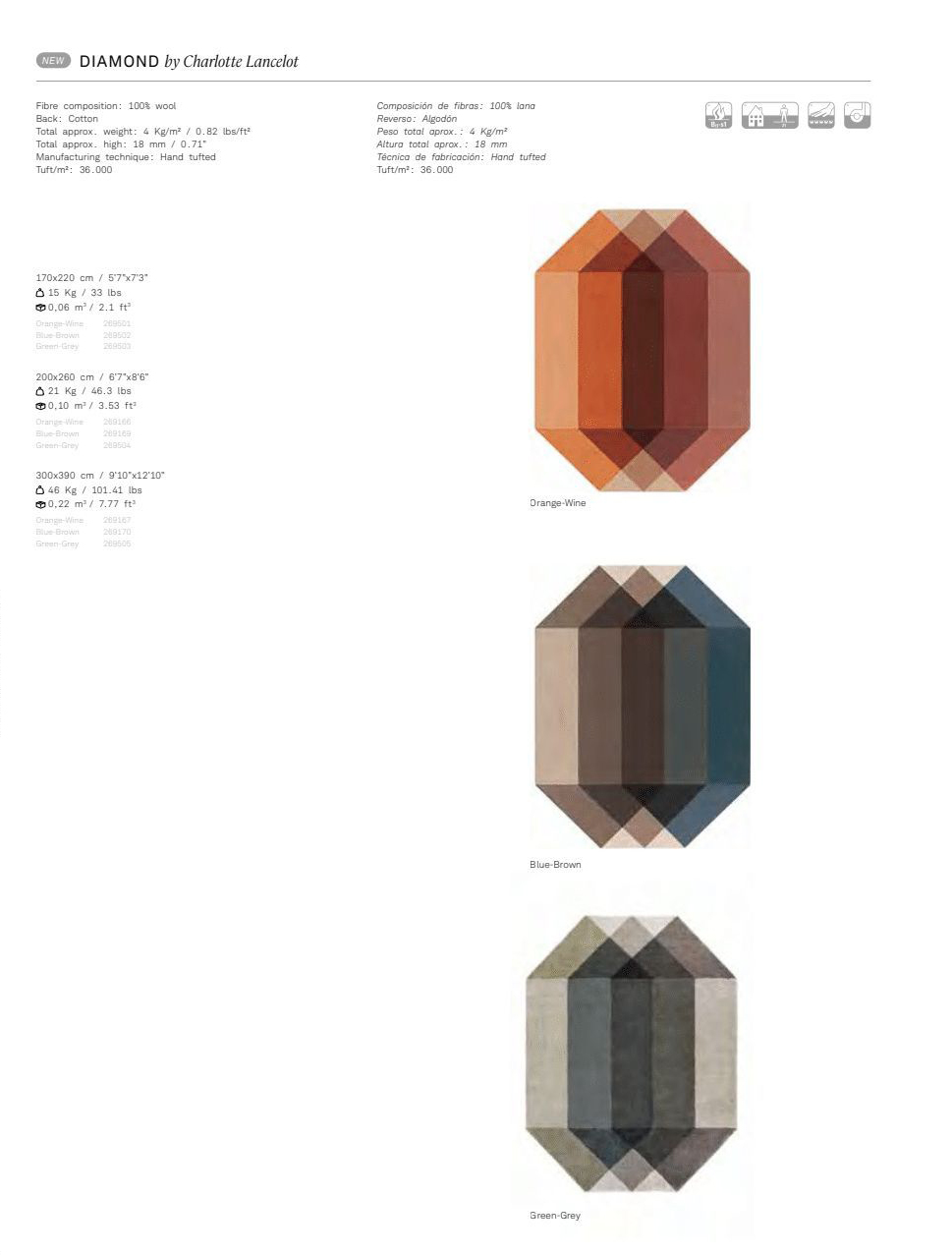 <p>Diamond is Charlotte Lancelot’s new collection of outdoor kilims for GAN, made from 100% recycled PET. The designer’s goal was to create a multi-faceted coloured diamond, thanks to the superposition of different translucent geometric figures. The result offers fascinating visual effects of transparency and gradients that show that beauty and sustainability, at GAN, always go hand in hand. The manufacturing technique is Kilim and due to the handmade nature of the GAN product, slight variations in size, colour, finish are normal. </p>