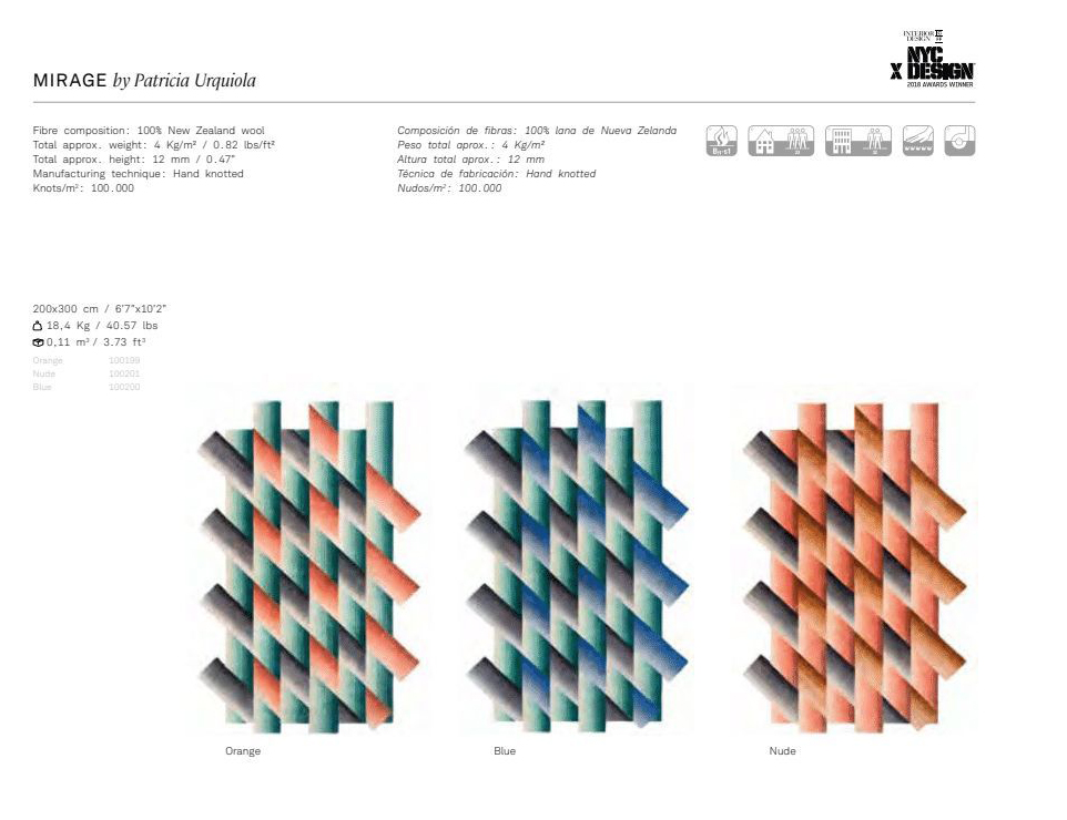 <p>Patricia Urquiola creates another modern classic accessory. Mirage, the new collection of rugs designed for GAN, is destined to become a treasured icon. Colour, geometry and superimposition are combined with this rug of pure New Zealand wool manufactured using the hand-knotted technique. Due to the handmade nature of the GAN product, slight variations in size, colour, finish are normal.</p>