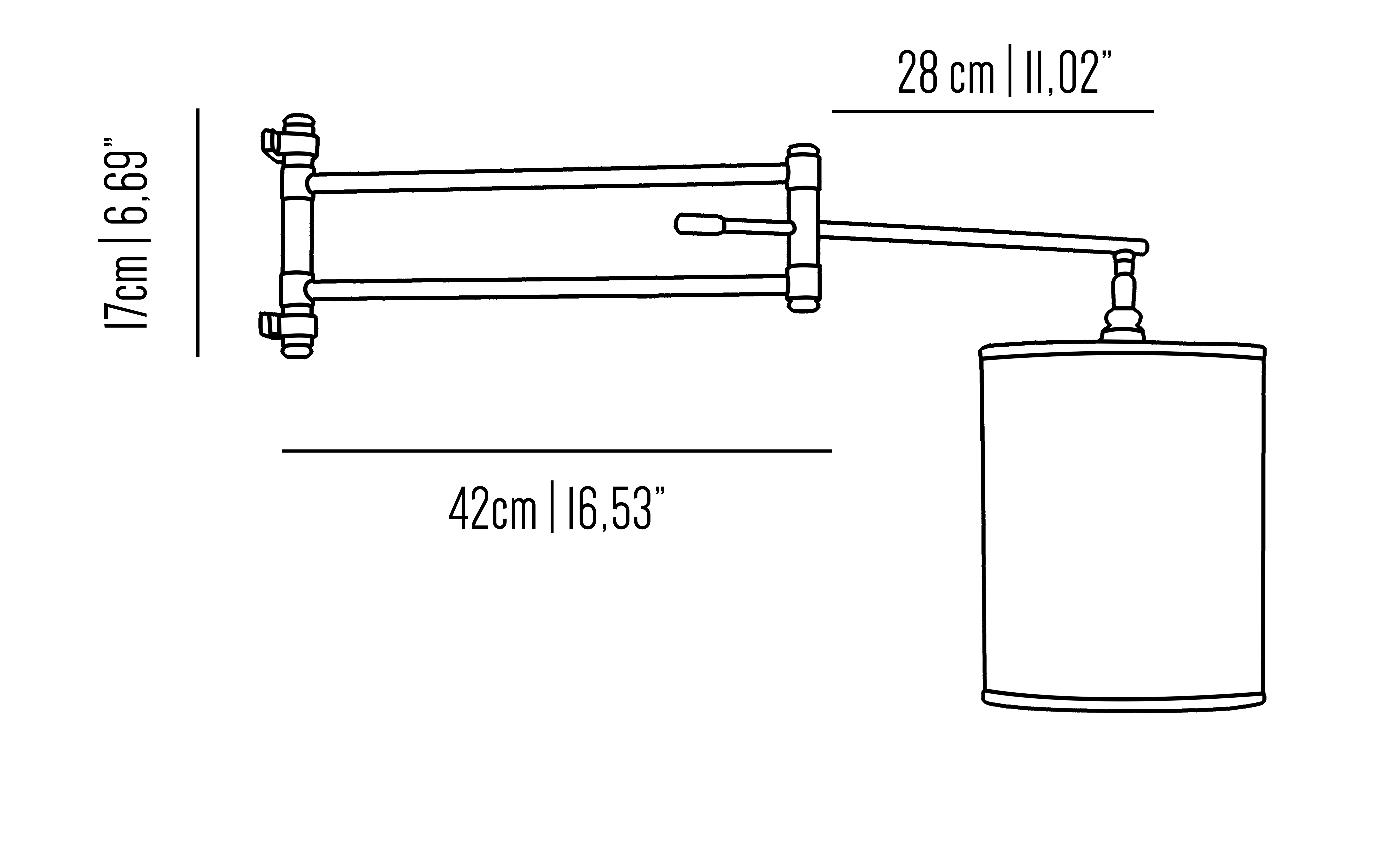 Novecento 232 Wall Light with jointed arm, Brass Structure and Fabric Shade.