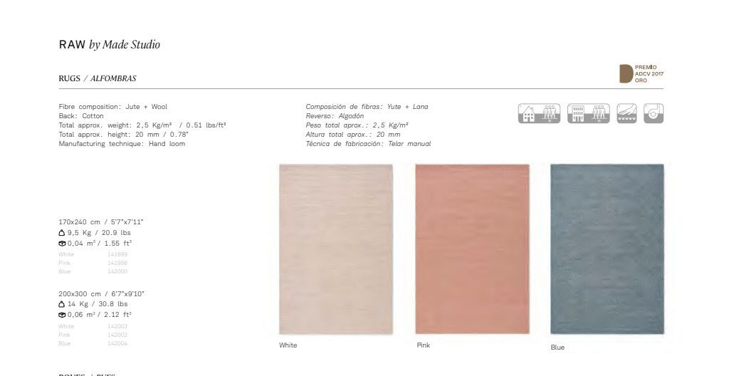 <p>Everything from its name, a synonym for purity and strength, to the Mediterranean architecture which inspires it, is a statement of sincerity and authenticity. A layer of soft wool over a jute base. Harmonious dialogue arises from the juxtaposition of two apparently antagonistic languages. The freshness of the permeable geometry of this second layer brings a contemporary look to an eminently classical design. These rugs have been hand made on a loom and due to the handmade nature of the GAN product, slight variations in size, colour, finish are normal. </p>