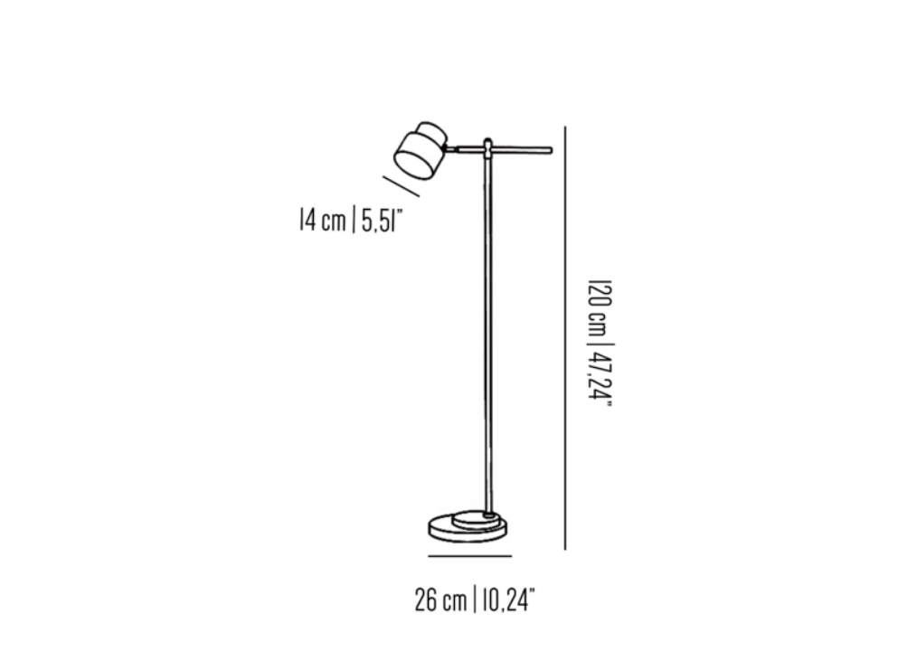 The Satellite 01 Floor Lamp belongs to the line designed for Brass Brothers & Co. by the designer Agnese Matteini. This surprising line of lamps takes its name from the double cylinder shape of the aluminum lampshade which, like two heavenly bodies, gravitate one above the other, the lampshade with its joint can be rotated and directed and customized according to one's taste in one colors available.