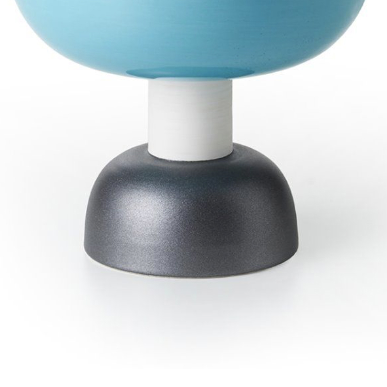 Bowl. Hand-turned in white clay. Two-tone glossy turquoise and oxidised copper glaze.